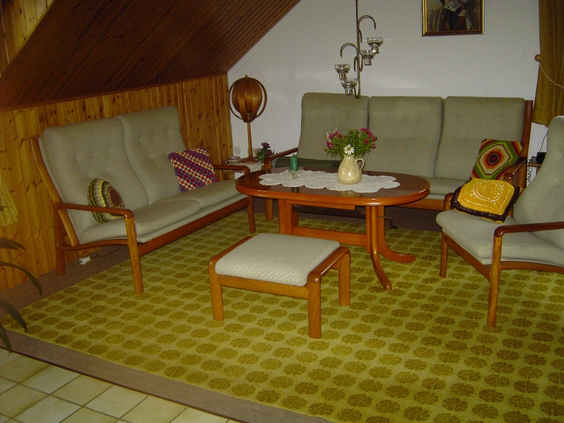 Die Ferienwohnung ist eine von unserem Wohnhaus getrennte komplette Wohnung mit separatem Eingang. (Bild Startseite, linker Balkon) Sie hat einen großen Wohnraum, drei Schlaf- räume, Küche und Bad und ist ca. 80 qm groß. Sie ist ausgelegt für 5 Personen (3 Erwachsene und 2 Kinder). Im Bedarfsfall kann ein vorhandenes Baby-Bett aufgestellt werden. Zur Ausstattung gehören: Bettwäsche Hand- tücher, eigener Telefonanschluß, WLAN, SAT-TV , Radio mit CD-Player, Kaminofen, eine Heimorgel, Haarfön, verschiedene Spiele, zahlreiche Bücher, einige "Trimm-Dich" Gerätschaften - Fahrräder. Hunde sind willkommen (bitte vorher nachfragen) |